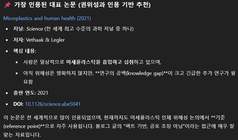 미세플라스틱 관련 논문을 추천해달라고 하니,