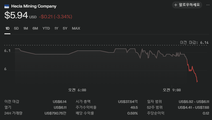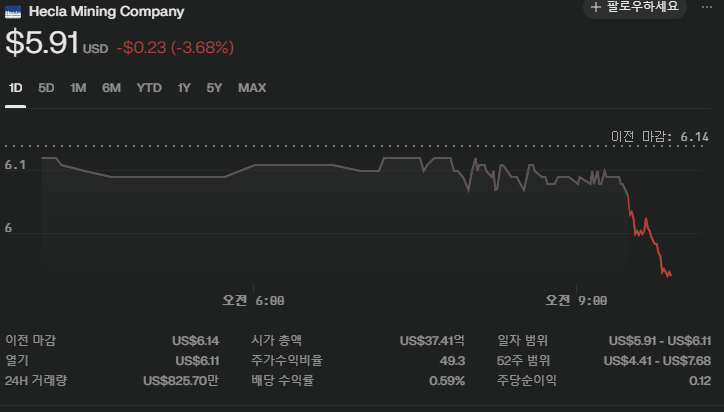 Hecla Mining (HL) 기업 정보 정리 (2025년 7월 28일 기준)